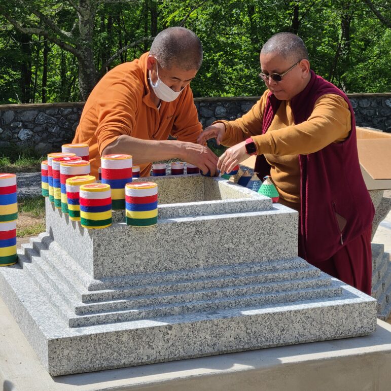 In 2023, the Bodhi Path network began a project to install eight stupas at its Natural Bridge, Virginia retreat center, around the center’s original Stupa of Enlightenment. The conditions came together for completion in June of 2024, a notable year during which Bodhi Path commemorated the 10th year since the parinirvana of the 14th Shamar Rinpoche.