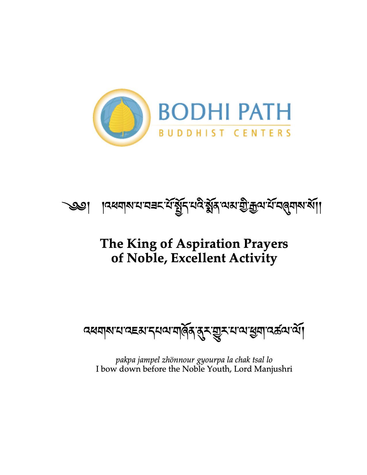 Practice Text: The King of Aspiration Prayers of Noble, Excellent Activity